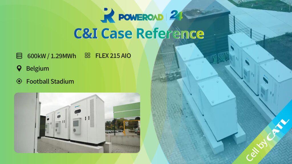 Solution: 600kW / 1.29MWh FLEX 215 AIO Location: Belgium Scenario: Football Stadium Application: · Solar Self-consumption · Demand Response Background